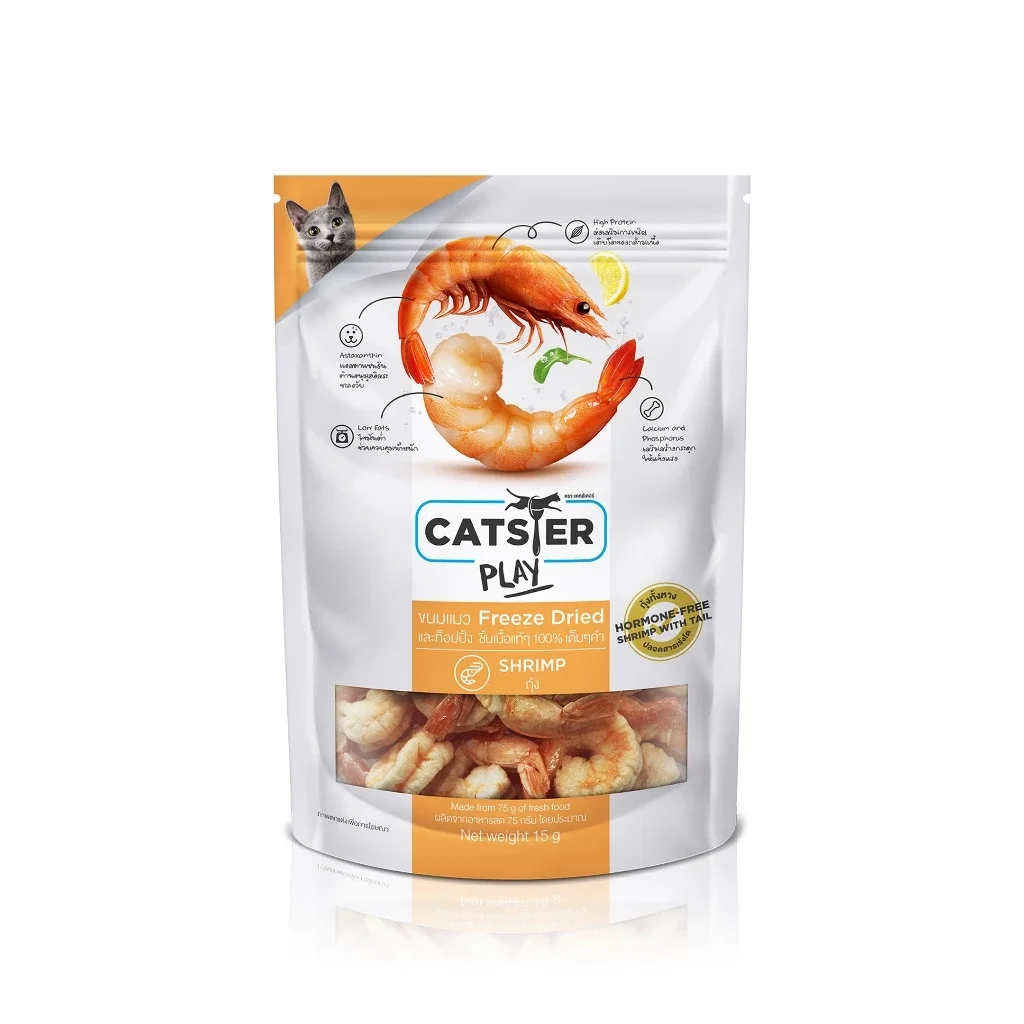 ขนมและท็อปปิ้งฟรีชดราย สำหรับแมว คัดสรรเนื้อกุ้งสด ชิ้นเนื้อแท้ๆ 100% เต็มๆ คำ สำหรับน้องแมวทุกสายพันธุ์ [หน่วยขาย: ซอง]